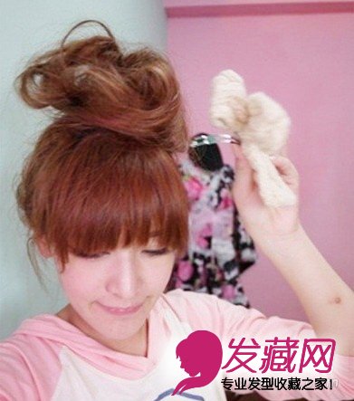 步骤八要想打造出蓬松凌乱的效果,就不能固定的太紧,不过我们用发饰来固定住花苞,还能让花苞头更加耐看哦!