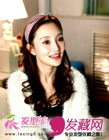 头箍把刘海自然的往后挽,耳前两侧少许的发丝在轻扬,发丝间透露着蓬松空气感,稍稍堆砌的内卷发梢稍许有些凌乱,整个发型把一个轻熟女形象唯美的呈现出来.
