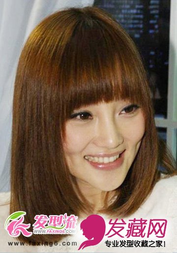 整齐的奶茶色齐刘海起到修饰年龄的作用,微微内扣的发梢修饰着拉长的脸廓,奶茶色齐刘海梨花头把一个甜美的邻家女形象活灵活现的展.