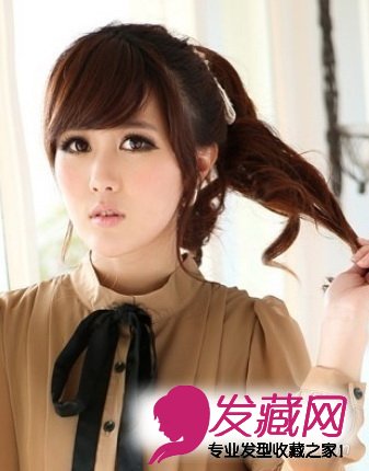 又是一款简单的马尾,动感的卷发扎起马尾特别的洋气,清纯。