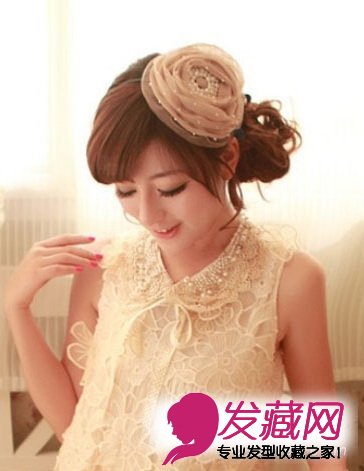 温婉淑女的花苞头也很好的哦!加上夸张的花朵发饰,淡雅中透着甜美可爱哦!