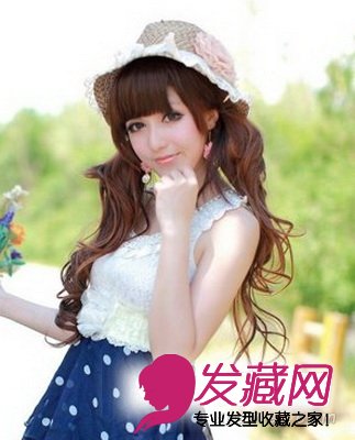 很整齐的齐刘海显得女孩如洋娃娃般可爱,把微卷发扎成两个马尾,散发着活力四射的光芒。搭配夏季甜美女孩钟爱的草帽,减龄效果十佳,很可爱。