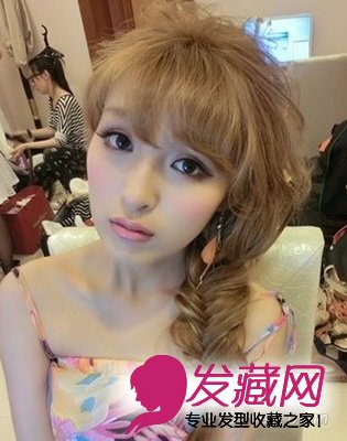 颜色有些特别吧,体现出一个甜美可爱的小女人形象,长发发型编织成一条品味独特的麻花辫造型,十分有甜美女孩的魅惑力哦。