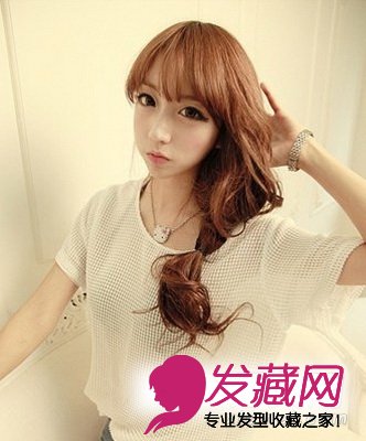 这款长发发型非常适合慵懒美眉的扎法,随意的将长发扎起一个休闲舒适的马尾辫,造型看起来不仅显时尚又带有俏皮的可爱味道,棕黄色染发颜色给发型注入了更多的时尚元素,还衬托出女孩白皙明亮的肌肤。