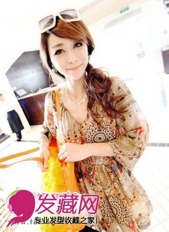 很休闲的长发发型设计,自然柔美,唯美的长发扎成一个俏皮时尚的女生发型,流露出浪漫的淑女味,斜分刘海打造出瓜子脸型,夏季度假游玩设计这么一款长发发型也是很上镜,很抢眼的哦!