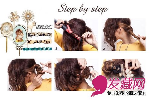 4. 把过长的前发分小束随意夹在发髻旁边。