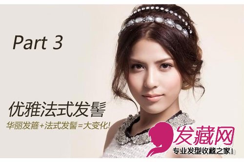 发箍不只能搭配一头飘逸长发,今年秀场上流行用华丽的发箍搭配法式发髻,增添变化感,戴发箍时以45度角直接戴在耳后,保留前发和浏海比较生动不呆板。