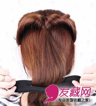步骤3:在将头发从中间穿过去,向下来,做出翻转的效果,将准备好的