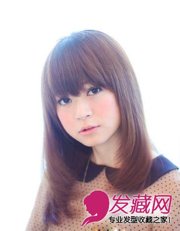 梨花头发型,顺直的中长发给人邻家女孩般的清纯感觉,齐刘海更体现小女孩的娇羞可爱。