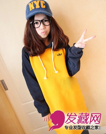 黑色系眼镜框可爱无敌,随性蓬松的中长发,加休闲鸭舌帽搭配可爱卡哇伊女孩味道尽显。