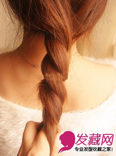 扭至发尾,让头发看起来更加慵懒随性,不过要扭紧,不然会掉出碎发。