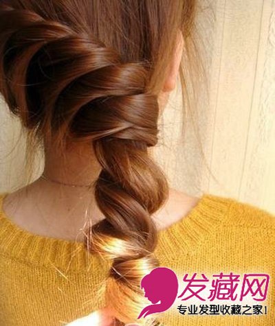 步骤6:接着剩下的头发继续扭,此时发股会越来越大,一直编至发尾处,收尾。