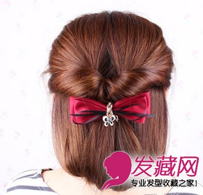 最后再带上喜爱的发饰,就完成了,是不是非常的迅速呢!赶快来试一试吧!你的长发也可以轻松的变短哦。