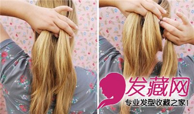 3、在将上层头发分为两股发束;从最上层右边再分出一股发束。