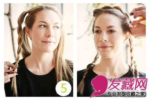 完成后用橡皮筋绑好。其余的马尾发辫都如此造型。