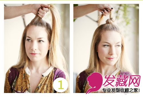扭拧头发并顺势盘成小发髻,将这个发结用发夹固定在头顶,发尾留在外面即可。