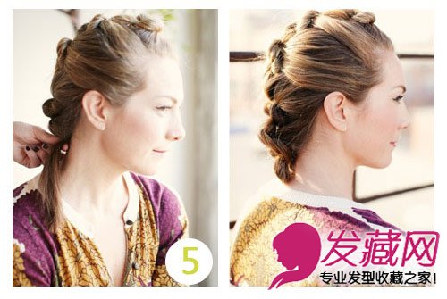 如此类推,完成余下的头发,盘出你喜欢的数量的发结直到颈线处结束,将最后余下的发尾用发夹夹好藏起,发型就完成了。