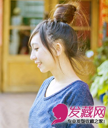 韩式俏皮丸子头扎发,高扎到发顶的造型最是显高显瘦,清爽活力的造型适合校园MM,甜美个性。