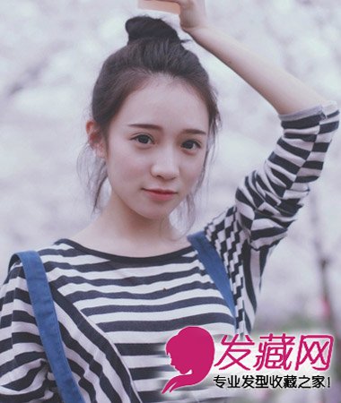 扎发,长发扎简单的丸子头发髻扎发清新好打理,露额发型清爽显活力清新。