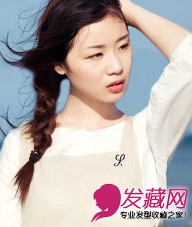 小清新范儿的韩式长发扎法,偏分的发型蓬松,低扎发辫简单好打理,搭配棕色染发更显肤白气质佳。