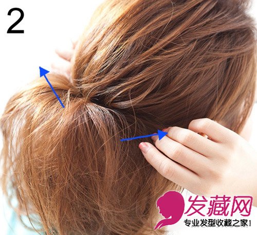 step2:将发尾部分向两侧拉扯出蓬松轻盈的纹路。