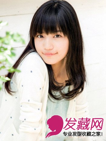 ,蓬松的中长发丝自然垂落两肩,发尾微微内扣的卷度搭配齐刘海,是最佳的修颜组合。
