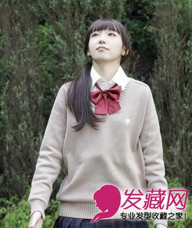 将长发扎成马尾辫,身穿校服,顿时变身校园萌妹子。