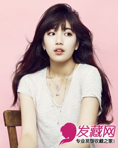 常见的及腰长发都是中分或斜分居多,秀智的长发却加入