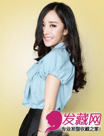 利落侧分的柔美卷发来修饰脸蛋,方脸更显小巧上镜,披肩的