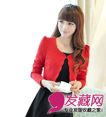 这种齐刘海式的长卷发发型是不是很显女生甜美公主范呢?整齐的刘海造型,自然清新的长卷发再配合一个简单的发箍造型优雅中还显小女生的甜美清新感。
