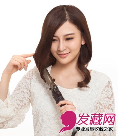 1. 用大号电卷棒由发梢至发中轻卷发丝,制造出微弯弧度。