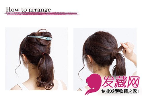 step1:取出前额的刘海后将脑后的头发绑成马尾。