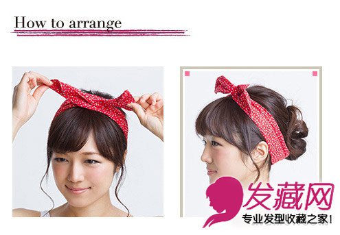 step3:再将马尾缠绕成花苞头后系上头巾。