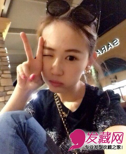简单的扎发发型,很是清爽的一款造型,干净的面容很是甜美可爱,少女范十足。