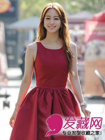 色,韩味十足又清新迷人,亮眼红裙映衬,更显甜美清新。