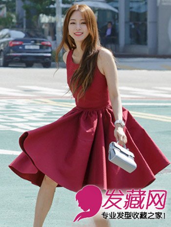 这样的出街造型也是当下非常流行的一款韩流造型,简单披肩长发配亮眼的连身裙,绝对百搭的韩系约会造型,妹纸们可以尝试借鉴下哦!