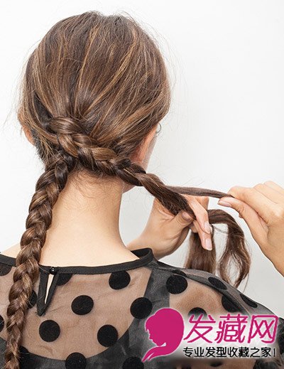 step1:将头发绑成马尾后分成两部分,分别编成两条辫子。