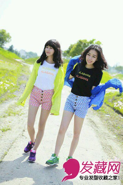 韩式卷发尽显甜美可爱,小小的弯曲度修饰两侧脸颊,洋气的长卷发活脱脱像两个芭比娃娃,真的是人见人爱。