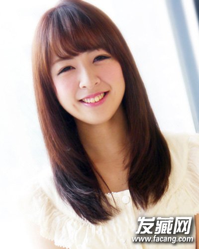 微卷内扣的齐刘海遮住了女生的额头,秀出妹纸可爱的脸蛋。简单的发尾更是清新可爱。