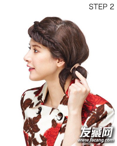 STEP 2:然后与小比例那边剩下的头发结合绕成丸子头。