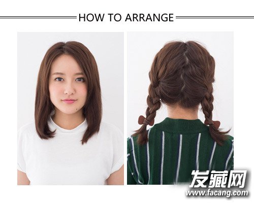 step 2:将头发编成双麻花辫,用甜美发圈固定。