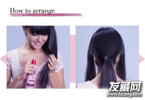 step2:在左右两侧各留出一束头发后绑成马尾。