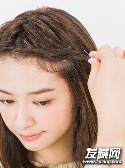 step4:再将发辫用发夹固定即可。