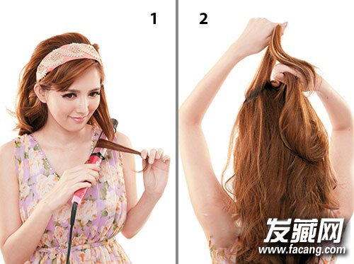 Step1: (头发全部上卷) 虽然是要将头发编起来,但是头发先用电棒卷过会比较好造型。