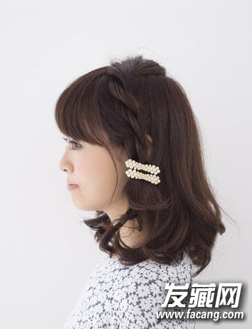 扭转发辫用珍珠发夹修饰,甜美中散发出吸睛感,下面一起来动手吧。