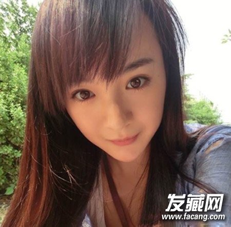与杨幂的妩媚感不同,李依伊长发很显清纯,细碎的刘海,棕色的长发,很显校花气质。
