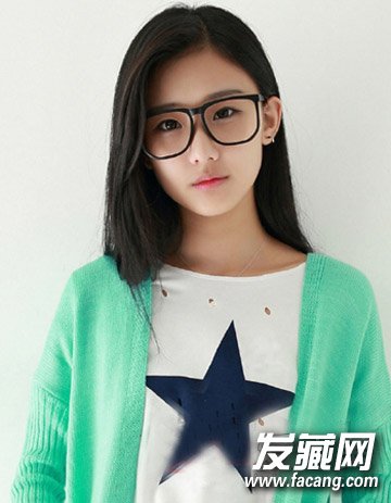 不仅简单而且时尚有气质感,清爽的露额发型加上披肩的长直发搭配上眼镜后特别适合校园女生,不仅甜美而且颇显气质。