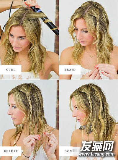 先把头顶头发卷发棒卷弯,再选择最上面的头发编一小绺三股辫~发量要少。