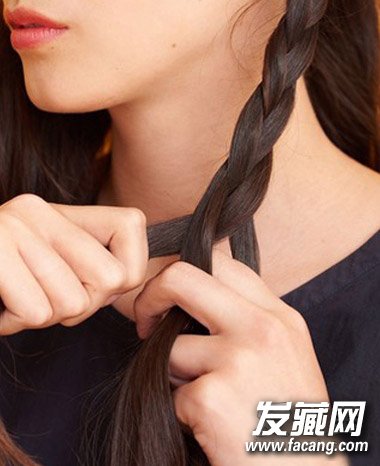 接着将分出的一侧耳边的头发扎成简单的三股辫。