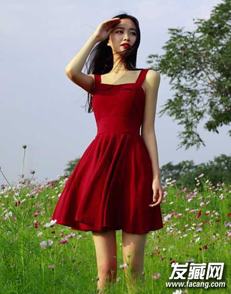 长直发刘海发型图片5、随风飘起的长直发,透着清新甜美,红唇红裙透着小性感,中分刘海修颜又有女神范,这款长直发真的好美,你喜欢吗?